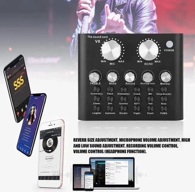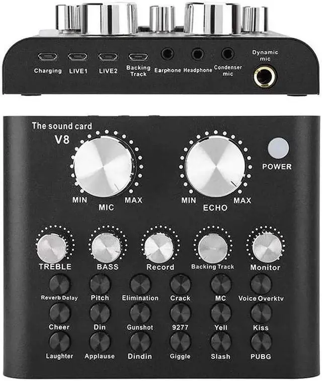 The sound card V8 voice changer provides these knobs, you can adjust and use these functions according to your preferences