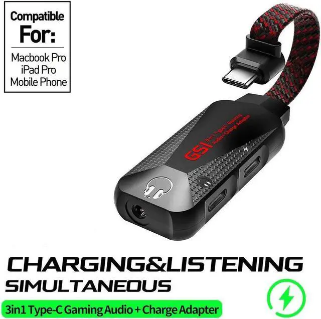 GS1 USB C Charging Adapter 3 in 1 Type-C to 3.5mm QC Fast Charging Mobile Phone Game Sound Card Audio Adapter Cable