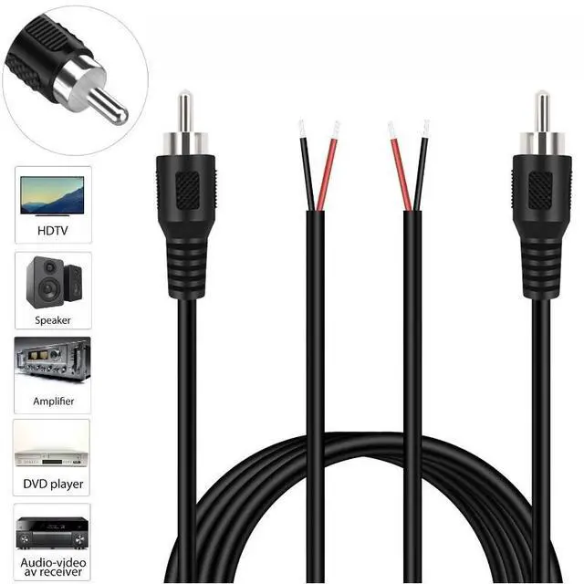 This RCA male plug to bare wire cord is ideal for replacing or repairing damaged RCA cables, widely used for audio and video devices such as DVD players, HDTVs, speakers, stereo receivers, A/V receivers, amplifiers, tuners, home theater systems, and HiFi systems.