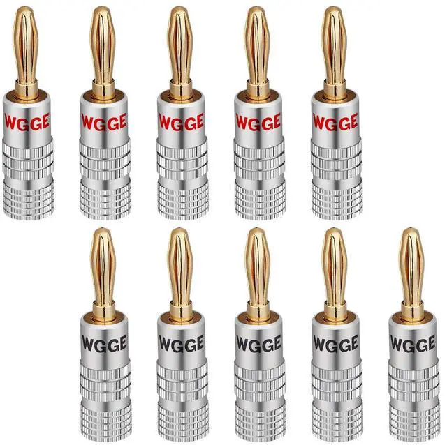 WGGE Banana Plugs Audio Jack Connector, 24k Gold Dual Screw Lock Speaker Connector for a lifetime of use, with a crystal clear signal. Isolates wires which keep them from shorting out and the two set screws keep the wire connection secure.