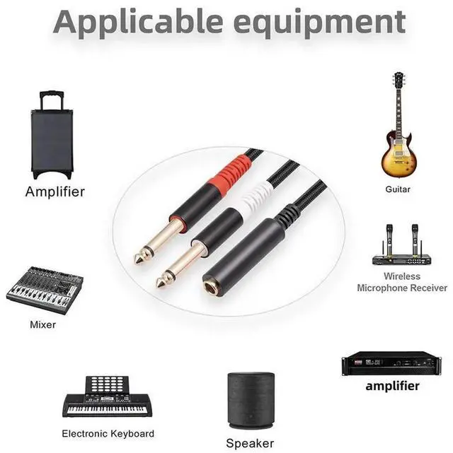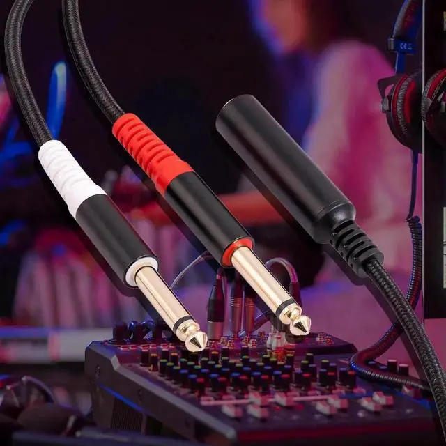 1/4 TRS To 1/4 TS Stereo To Single Track Audio Cable Copper Wire Shield Stereo Mono Line Replacement for Power Amplifier