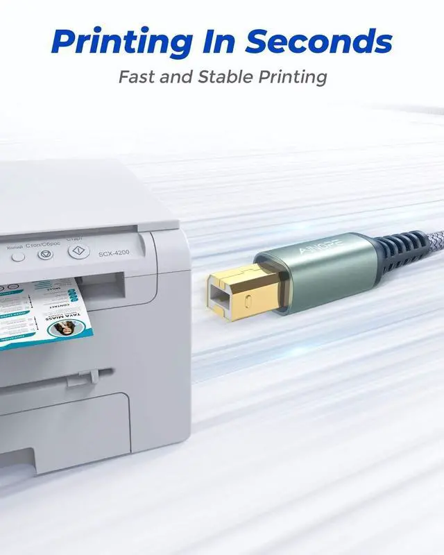 : 2025 BEST CHOICE FOR PRINTER CONNECTIVITYThe USB A to USB B Printer Cable is the perfect solution for effortlessly connecting your printer, scanner, server, external hard drive, camera, piano, and other USB B devices to laptops, computers (Mac/PC), or any USB-enabled device for fast, reliable data transfer. Superior durability and high-performance technology ensure smooth, uninterrupted connections for all your essential devices.