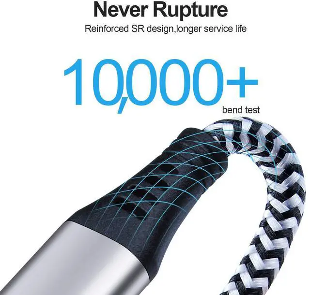 Reinforced Durability: Superior aluminum metal housing offers exceptional protection and durability with a lifespan of over 10,000 bends, ensuring years of trouble-free use. The premium flexible nylon braided design makes it easy to sort out and avoid knotting or tangling.