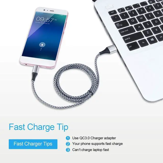 Perfect 6FT USB C Cable: With a 6FT length, you can comfortably lie on the couch or sofa and use your devices while charging. Enjoy great flexibility in your bedroom, office, and even in the backseat of your car.