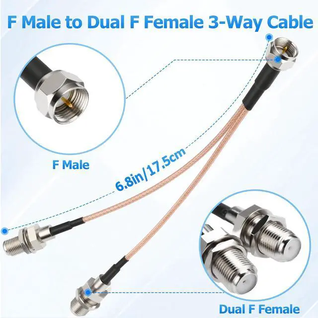 2 Pack 75Ohm TV Antenna 3 Way Splitter Combiner F Male to F Dual Female RG316 Coaxial Cable 6inch