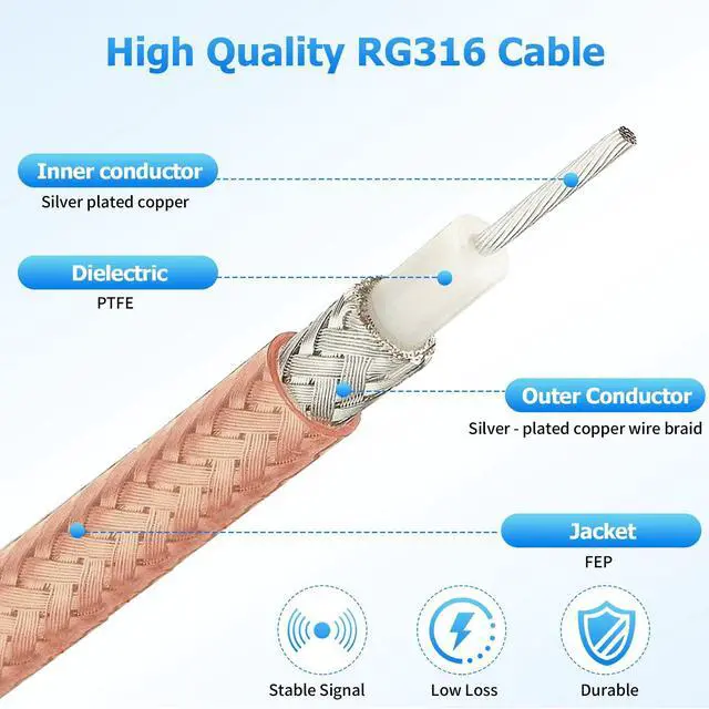 • F connectors are made of high quality brass, nickel-plated for higher signal transmission and extremely low signal loss.