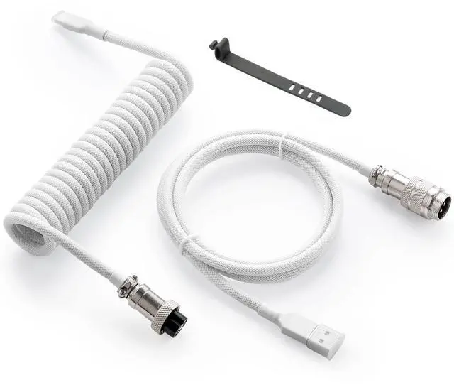 Pro Custom Coiled USB C Cable for Gaming Keyboard, Double-Sleeved Mechanical Keyboard Cable with Detachable Metal Aviator, 1.5M USB-C to USB-A, White Color