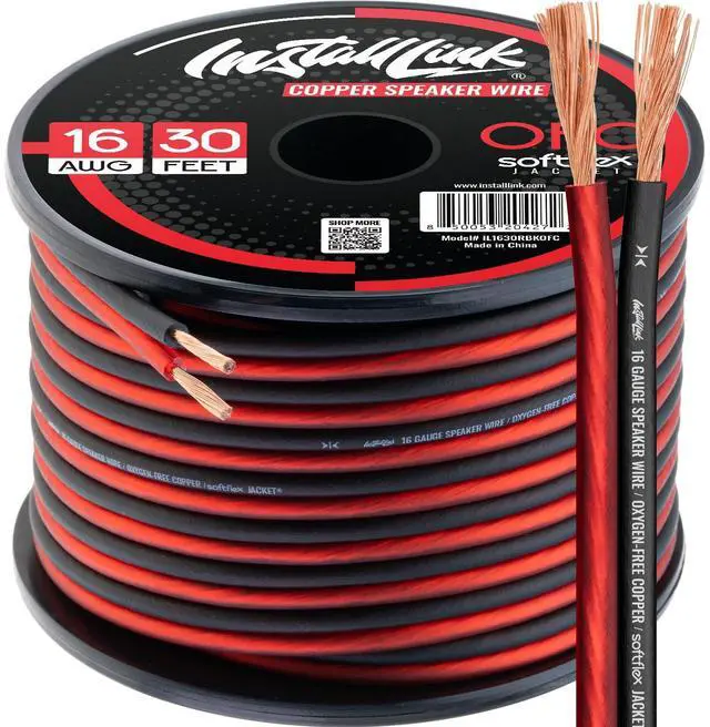PREMIUM SPEAKER WIRE [ Frosted Red/Black | 30-feet (9.1m) | 16 Gauge ] - Featuring a double conductor, this stranded wire is constructed from high-grade oxygen-free copper. It is perfect for achieving outstanding audio performance, exceptional flexibility, easy stripping, and great polarity identification.