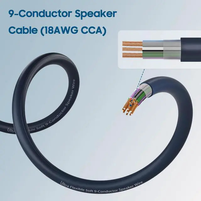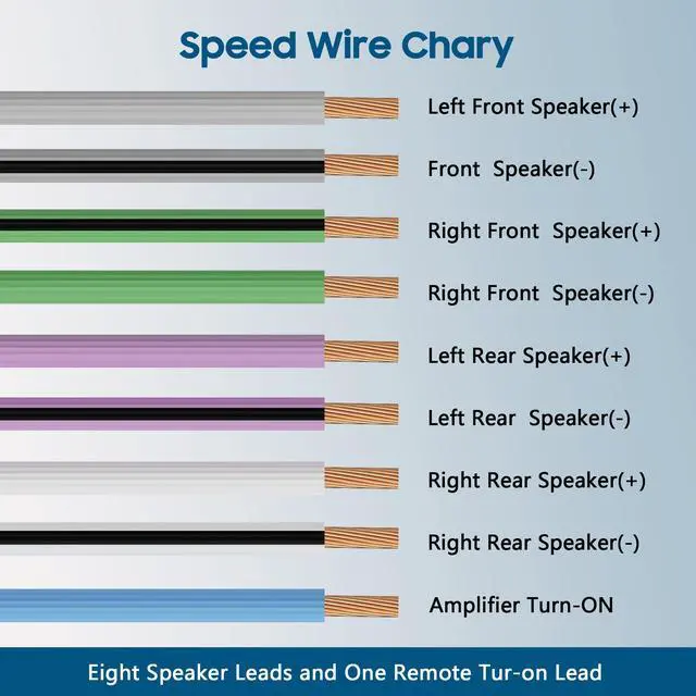 9-conductor wire: Includes 8 speaker leads and 1 remote turn-on lead, perfect for installing 4-channel amplifiers to speakers.