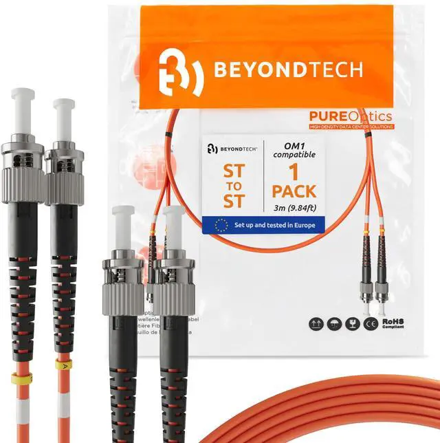 Standards Compliant: This OM1 Fiber ST to ST cable meets IEC 60793-2-10 Type A1b specifications and complies with RoHS regulations, ensuring dependable optical performance and strict adherence to global environmental safety standards.