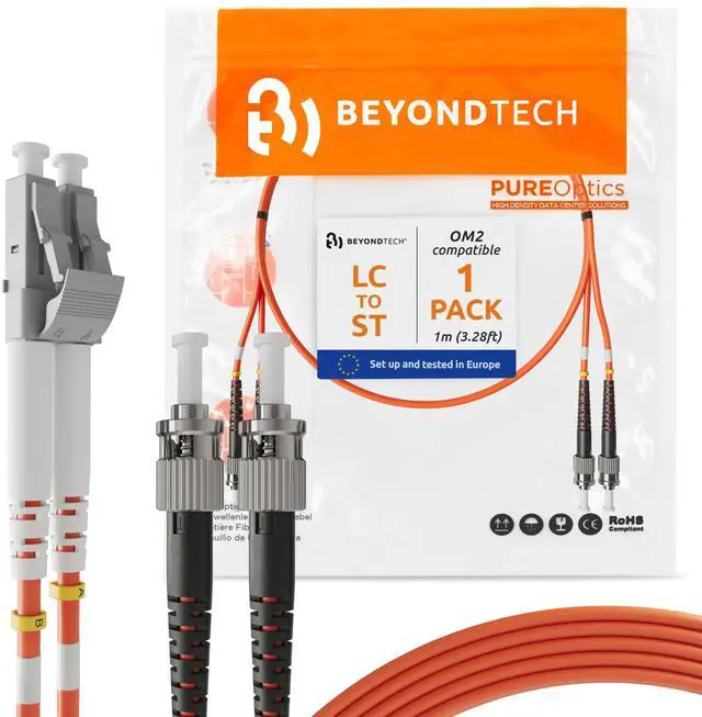 Standards Compliant: This OM2 Fiber LC to ST cable meets IEC 60793-2-10 Type A1a.2 specifications and complies with RoHS regulations, ensuring dependable optical performance and strict adherence to global environmental safety standards.