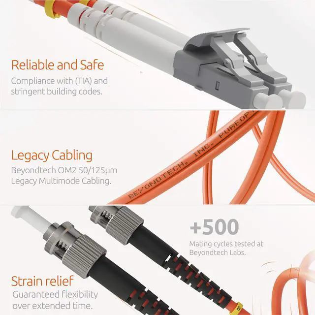 OM2 Network Optimization: Designed for multimode fiber networks, this laser-optimized OM2 multimode fiber LC to ST cable ensures consistent, efficient connectivity for high-demand telecom, enterprise, and commercial network infrastructures.