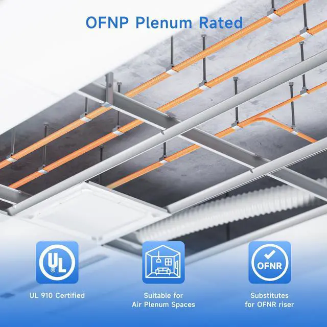 Standards-Compliant OM1 Plenum Cable: This OM1 cable features a superior OFNP (plenum) safety rating and can substitute for OFNR (riser) cable
