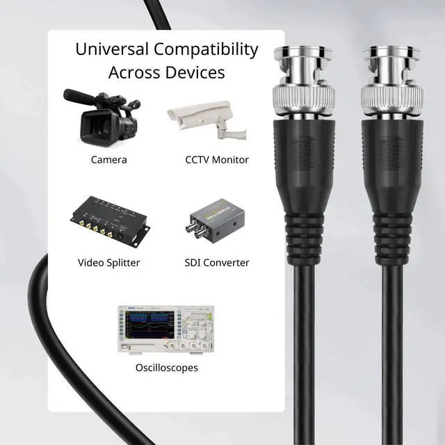 Secure Connection: The BNC RG6 Coaxial Cable ensures a secure and reliable connection, reducing the risk of accidental disconnections, ensuring transmission stays protected, and delivering a seamless user experience.