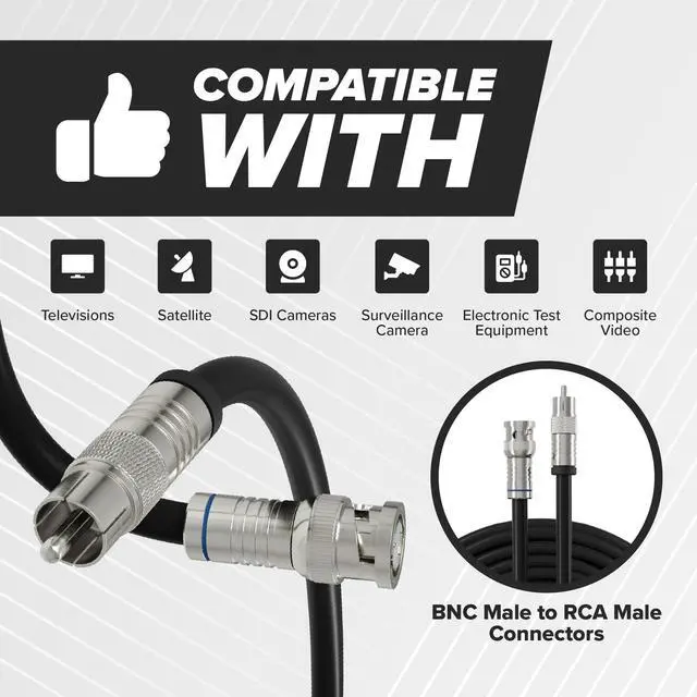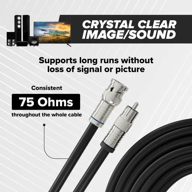 Smooth Connection: With BNC-to-RCA connectors, this multipurpose RG6 coax cable provides a clear signal, even over long-distance runs.
