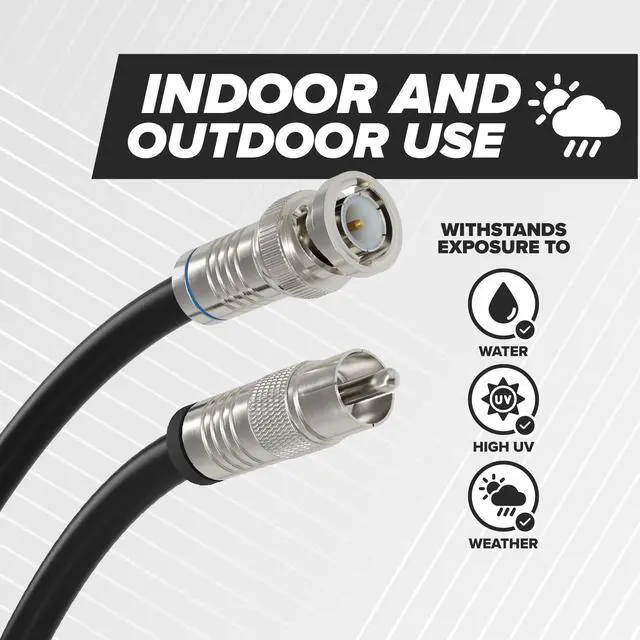 Indoor and Outdoor Use: This coax cable is engineered for use both inside and outside, and includes a PVC outer jacket.