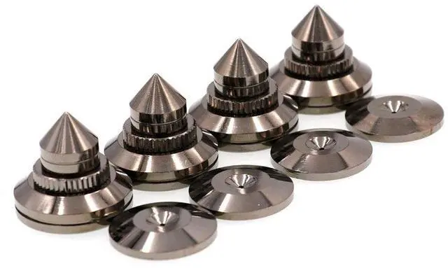 Made of high quality brass material which is durable and designed for long-term use. The spike diameter is 27.8mm and the spike height is 25mm. The pad diameter is 25mm; the pad thickness is 4.08mm. Suitable for speakers, DACs, amplifiers, CD players, etc.