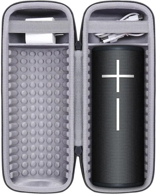 This hard wireless speaker travel case is designed for MEGABOOM 4 and MEGABOOM 3 portable wireless Bluetooth speakers. The hard EVA shell case is shockproof, dustproof, and water-resistant, protecting your speaker from drops, scratches, bumps, splashes, and dust.