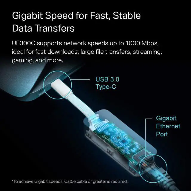 USB-C 3.0 for Faster, More Stable Connections - Experience full Gigabit Ethernet performance over your laptops USB-C 3.0 port and elevate your browsing experience to transfer files, play games, video chat, and stream HD videos seamlessly. (To reach 1Gbps, please use CAT6 or up Ethernet cables.)
