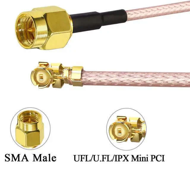 Package Included: 5pcs SMA Male to UFL/U.FL/IPX/MHF1 Coaxial Cable (Connector 1: SMA Male connector, Connector 2: IPX connector, Cable type: RG178 coaxial cable)