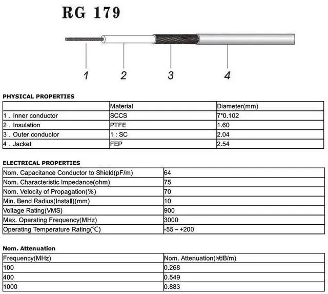 This SDI cable is ideal for short-distance connection devices. Made with PTFE insulating material, it features light weight, good flexibility, and corrosion resistance. The copper conductor and silver-plated shielding braid provide excellent shielding with minimal signal attenuation.