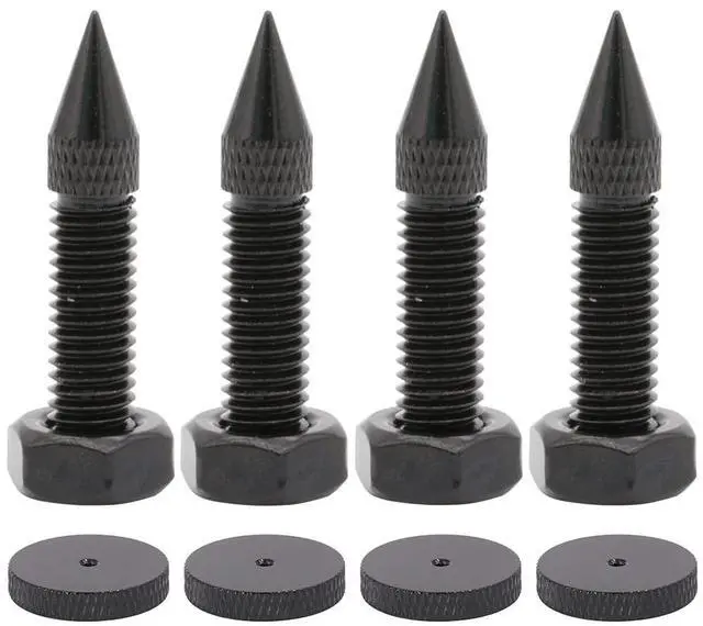 4 Pack Isolation Spikes Floor Protectors - Adjustable M8 Black Speaker Spikes for Subwoofer, CD DVD Player, Turntable, Recorder Chassis With Isolation Feet Pad