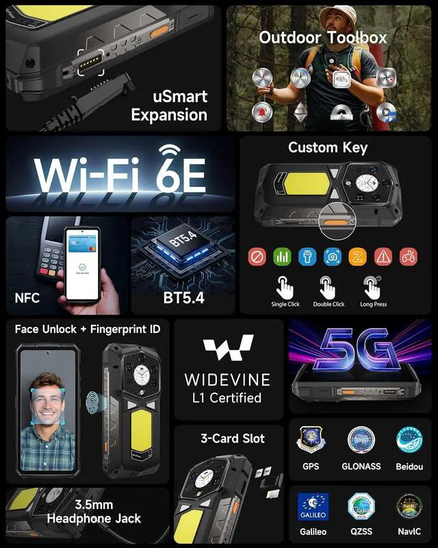 More Features & US WARRANTYAI Toolbox, uSmart Expansion Connector, Widevine L1, Wifi 6E, IR Blaster, Fingerprint Unlock, NFC, Headset-Free FM Radio, Custom Key, Outdoor Toolbox, 3-Card Slot, GPS + GLONASS + Beidou + Galileo, Gloves Mode, etc. We provide 12 months of manufacturer warranty service in the US. If you have any questions about the product, please contact us. Were always happy to help.