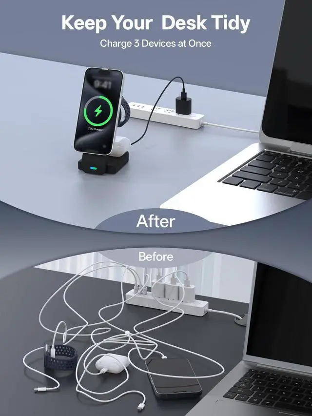 | Built-In Media | 3 in 1 Magnetic Wireless Charging Station,15W USB-C Charger,3.3ft(1m) USB C to C cable,User Manual |