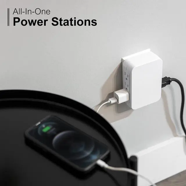 Stay connected and protected with the GE-branded 6-Outlet Side-Access Surge Protector. Featuring six grounded outlets with 1,200 Joules of surge protection, this surge protector transforms a single outlet into an easy-to-use powering station. The low-profile design is a perfect fit behind flat-screen TVs and furniture — great for the home office, entertainment centers, workspaces, and more.