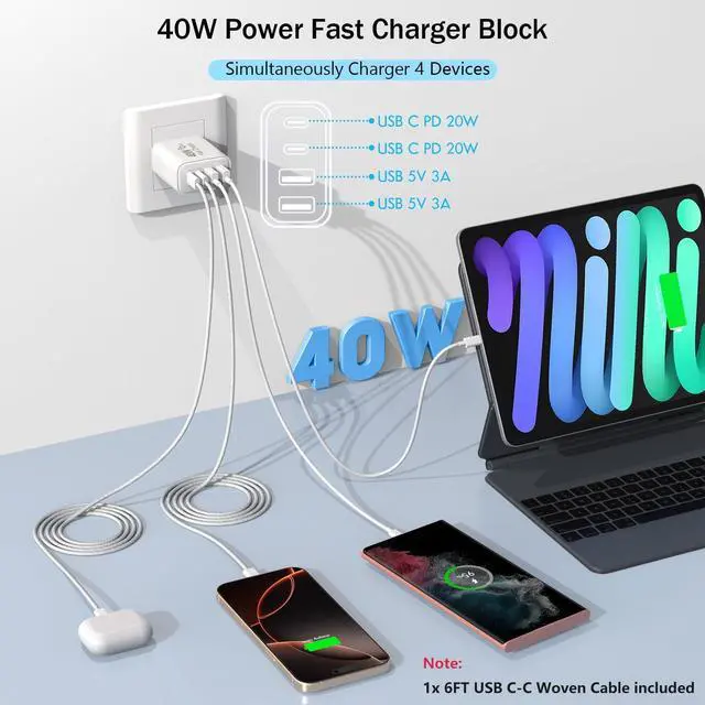 ![Alt view image 6 of 7 - [Apple MFi Certified]40W iPhone 17/16/15 Fast Charger,PD 40W Type C Apple Charger 4 Port Wall Plug with 6FT USB C-C Fast Charging Woven Cord for iPhone 17/17 Pro/16/16e/16 Pro Max/15/iPad Pro/Air/Mini](https://c1.neweggimages.com/productimage/nb640/C5RZD2603310XRZUY00.jpg)