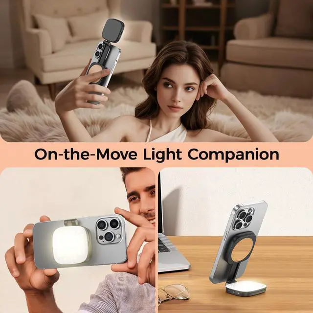 5 Color Temperatures& 5 Brightness LevelsMagnetic fill light with 5 color temperatures adjustable from 3000K to 6500K, 20%-100% stepless brightness adjustment, easily switch different modes through physical keys. Multiple lighting modes perfectly meet the needs of video creators such as YouTube/Tik Tok/Zoom...
