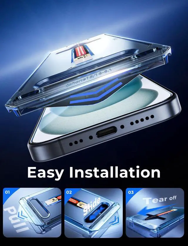 [Automatic Dust Removal Tech] Just cover and pull, the screen protector automatically aligns and takes away the dust. No more worrying about bubbles and dust. Please watch our Dust-Elimination Installation video tutorial before installing.