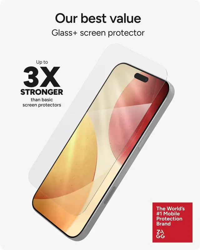 3X IMPACT & SHATTER PROTECTION FOR YOUR IPHONE - Protect better with ZAGG Glass+ iPhone 17 Pro Max screen protector, 3X stronger than basic glass screen protection to help defend against drops, dings, scratches, impacts and everyday smudges