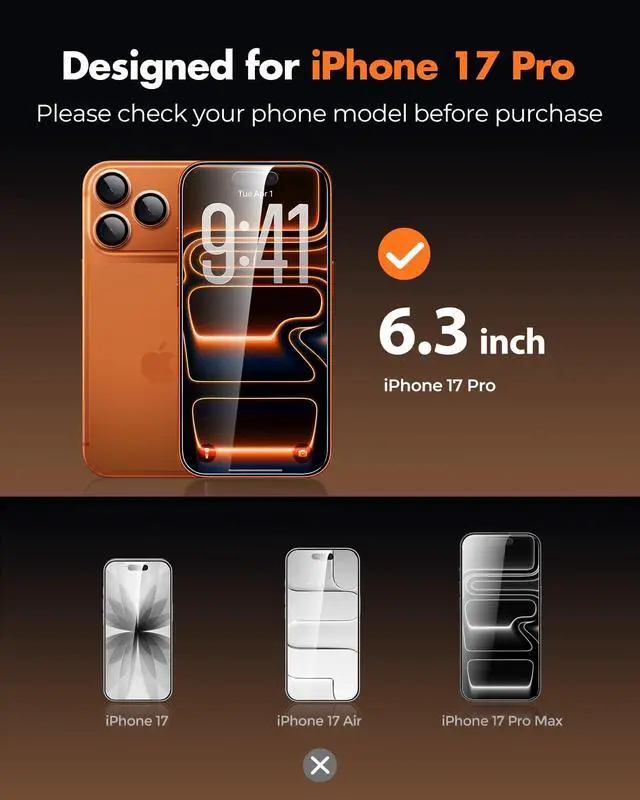 Unbreakable 9H+ Screen & Camera Lens Protectors for iPhone 17 Pro (6.3")
