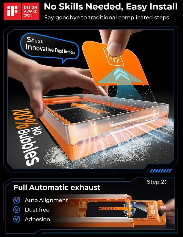 Auto-Dust Removal,Easy Installation, Zero-Bubble, Case Friendly