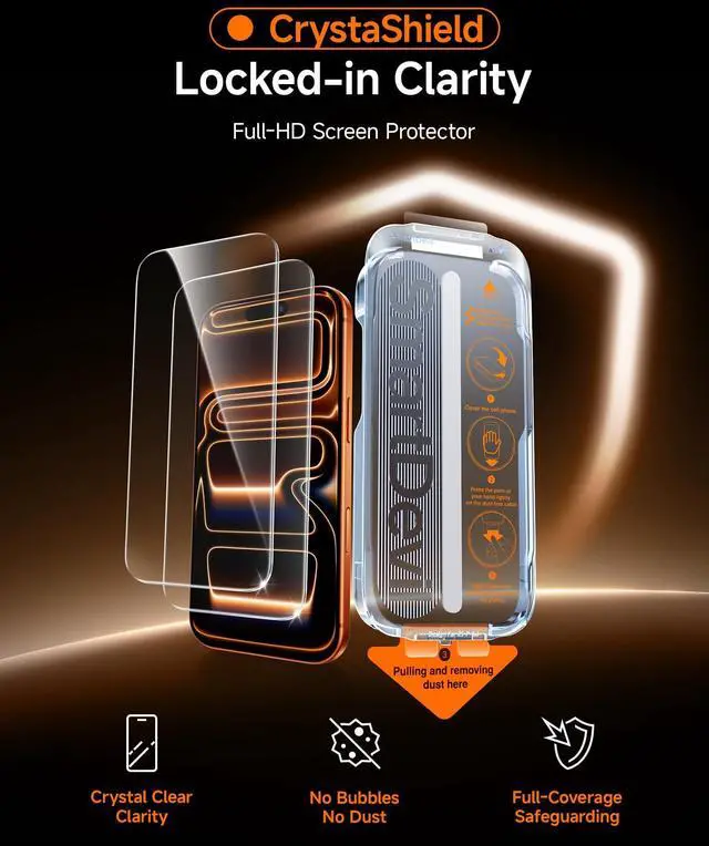 2 Pack for iPhone 17 Pro Max Screen Protector, 9H Hardness Military Grade Shatterproof, HD Clear Tempered Glass with Auto Dust-Elimination, Bubble Free, Easy Installation, Case Friendly