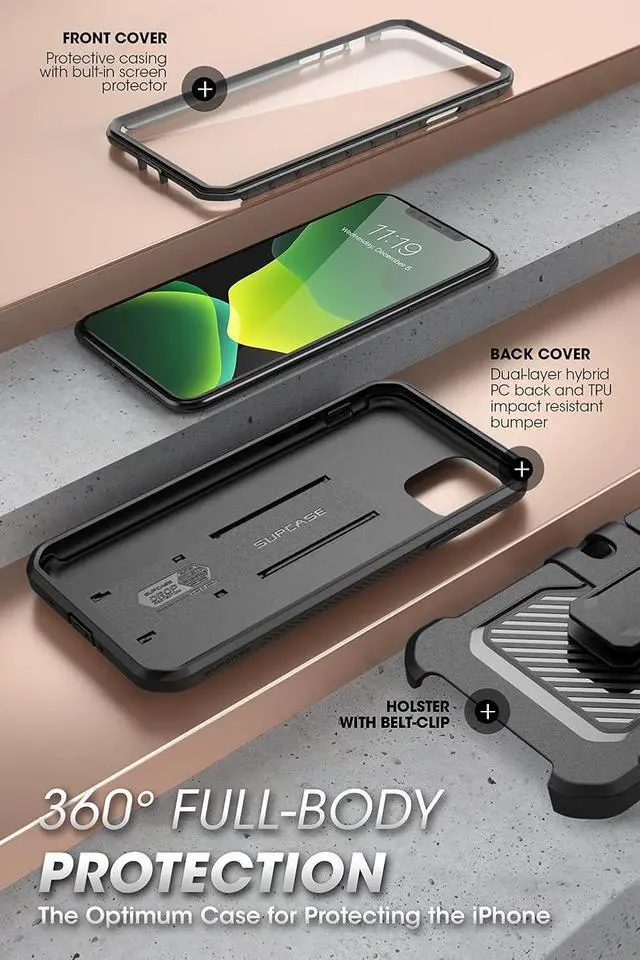 ![Alt view image 7 of 7 - SOEWIOU for iPhone 11 Case with Screen Protector (Unicorn Beetle Pro) [Built-in Stand & Belt Clip] [Military-Grade Protection] Heavy Duty Full-Body Protective Phone Case for iPhone 11 6.1 Black](https://c1.neweggimages.com/productimage/nb640/C55UD26022708A0219B.jpg)