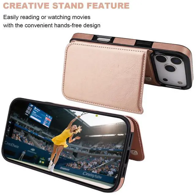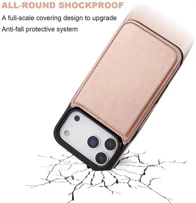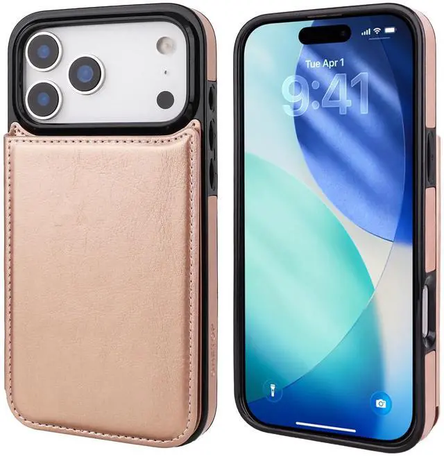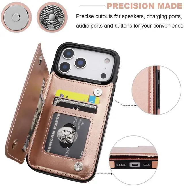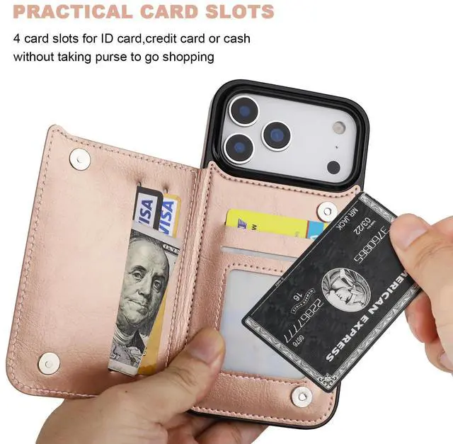 ONETOP Compatible with iPhone 17 Pro Max Wallet Case with Card Holder, PU Leather Kickstand Card Slots Case, Double Magnetic Clasp and Durable Shockproof Cover 6.9 Inch (Rose Gold)