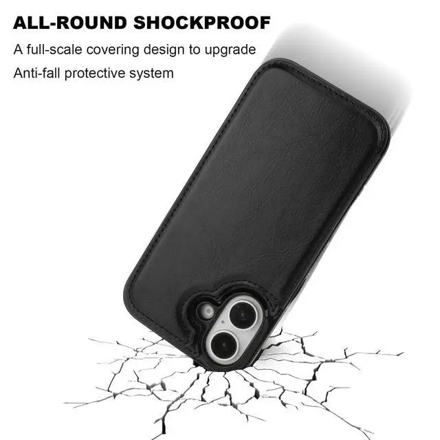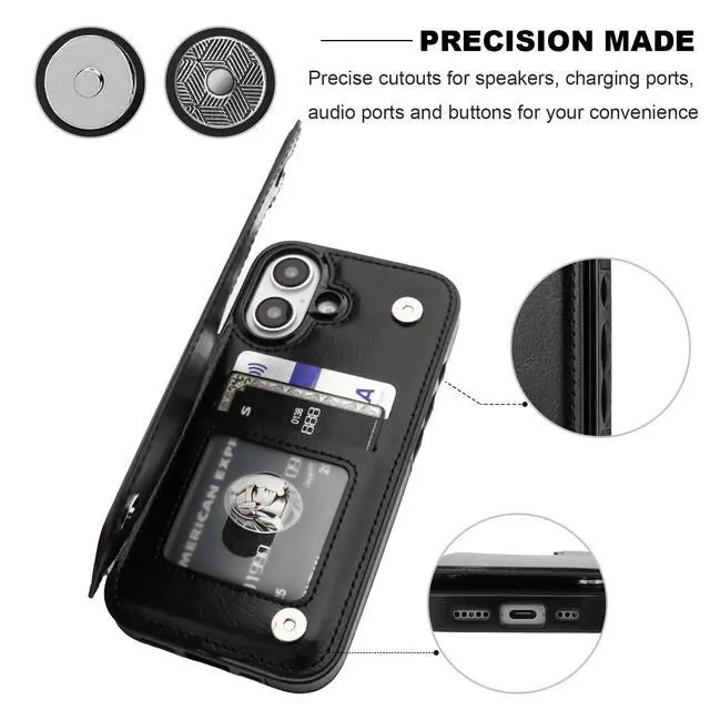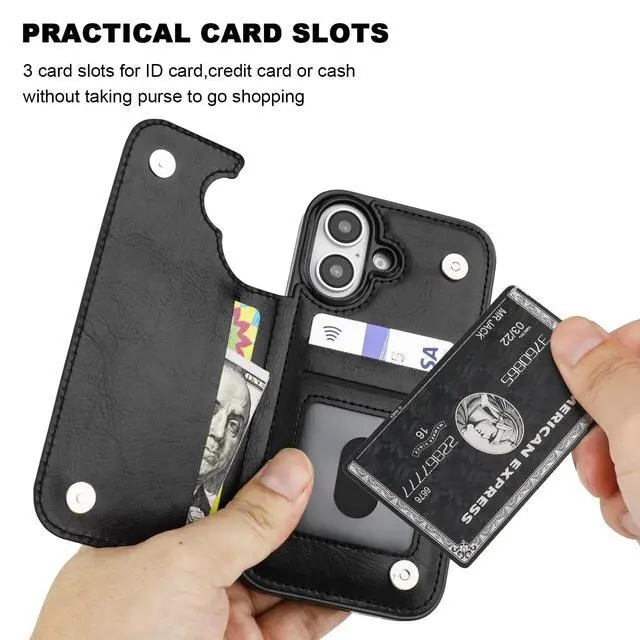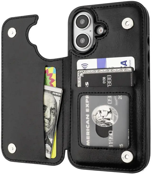 ONETOP Compatible with iPhone 16 Wallet Case with Card Holder, PU Leather Kickstand Card Slots Case, Double Magnetic Clasp and Durable Shockproof Cover 6.1 Inch (Black)