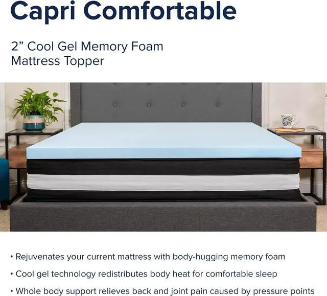 This innerspring mattress is fantastic on its own but when you add the 2" thick cooling gel-infused memory foam topper that keeps you sweat free, inhibits allergens and provides whole body support, you have just hit the bedding lottery. Versatility is always a plus and this twin-size mattress is compatible with trundle beds, platform beds and adjustable bed frames. When using with a standard bed frame a box spring or other foundation is required. Safety is paramount and this premium mattress has a 16CFR 1632 fire rating while the cooling mattress topper is certified with both 16 CFR 1303 and 16 CFR 1632 fire ratings.