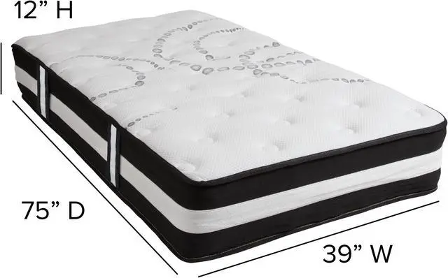 Wake up feeling refreshed and invigorated when you purchase this twin size 12" foam and pocket spring mattress and memory foam topper value bundle. This medium-firm twin mattress is filled with premium, high-density foam and is constructed with ultra-supportive material. The foam is CertiPUR-US Certified so it's free from heavy metals, phthalates, BPDE, formaldehyde and has reduced VOCs so you can rest easy knowing your indoor air quality won't be compromised. Featuring individually wrapped pocket spring coils, this comfortable mattress will fill gaps of your sleeping form, limit motion transfer and allow airflow through the mattress.