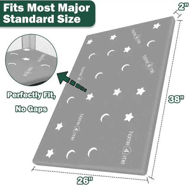 Home4me BabyMattress 38" x 26"x 2'', Dual Sided Toddlers Mattresses, Gel Memory Foam Mattresses, Toddler Mattress Pad with Removable Washable Cover for Baby and Toddlers, Grey