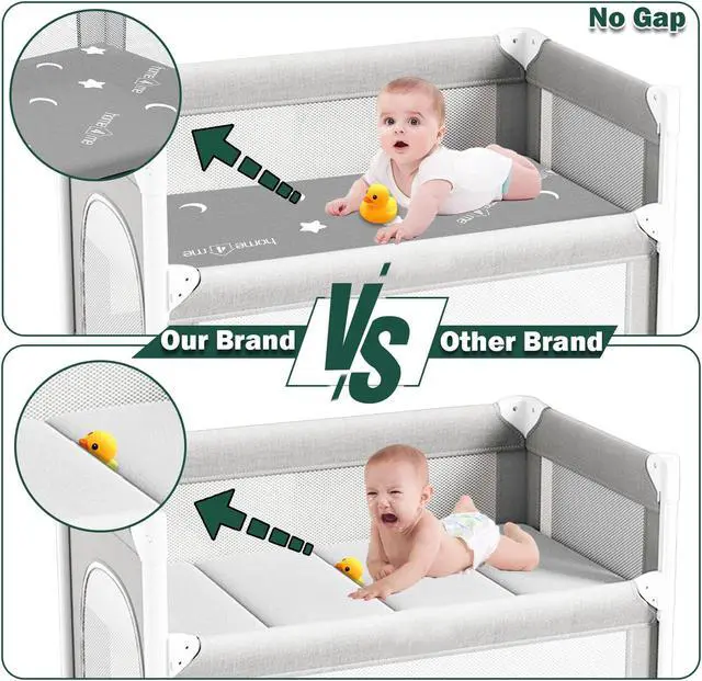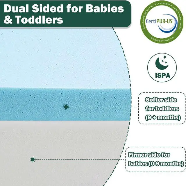 Dual Sided for Babies & Toddlers: Playpen mattresses dual sided optimal design for your growing babys developmental needs. High-Density Support Foam white side for babies (0-9 months) can better support protect the baby's spine. The blue side of the highly elastic memory foam creates a soft and comfortable play surface for toddlers (9 + months).