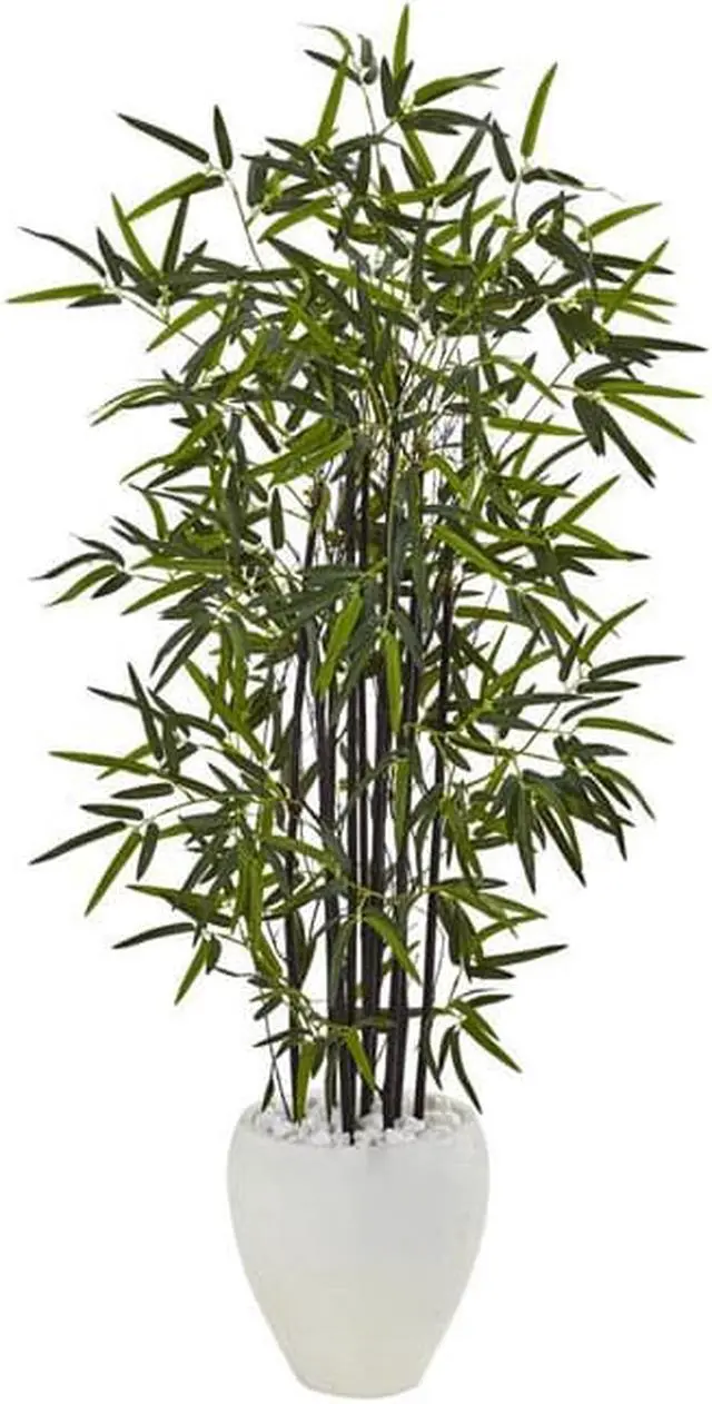 At five feet tall, this black bamboo tree helps make any room feel like southeast Asia. The solid black stalks and numerous green leaves make it nearly indistinguishable from the real thing. It comes complete with an oval textured planter and is perfect for a living room or sitting area.