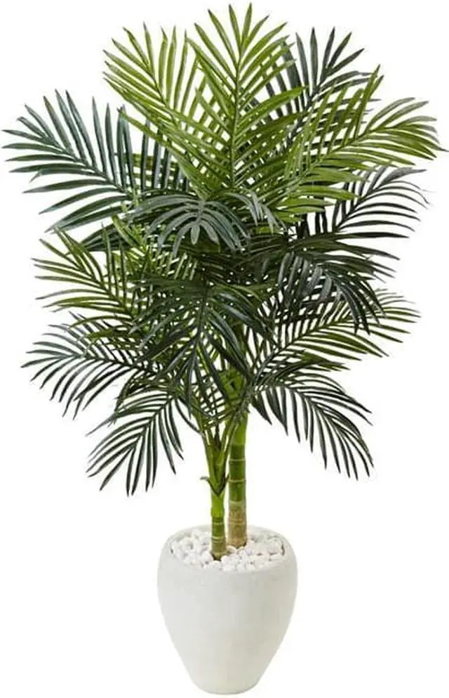 4.5 Golden Cane Palm Tree in White Oval Planter
