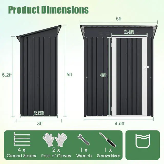 Reinforced Stability & Long-Term Durability: Built with heavy-duty vertical support tubes and a ground frame foundation, this outdoor shed offers superior structural strength. Protective corner caps and screw covers reduce wear for extended use.