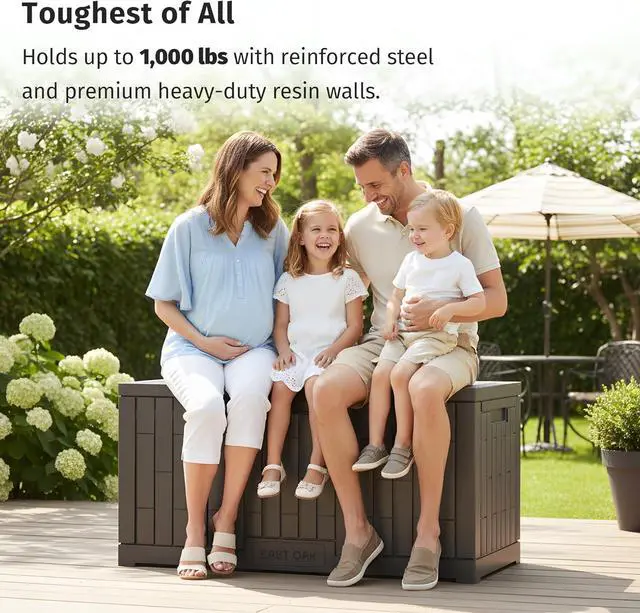 1,000 LBS OF STRENGTH - Reinforced with steel tubing and built from heavy-duty resin, this deck box supports up to 1,000 lbs without warping, sagging, or cracking. No compromises