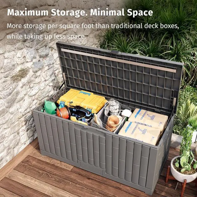 GOODBYE OUTDOOR CLUTTER - Engineered for more storage in less space, its 120-gallon interior holds more than standard boxes its size, perfect for patios, backyards, and even tight outdoor spaces