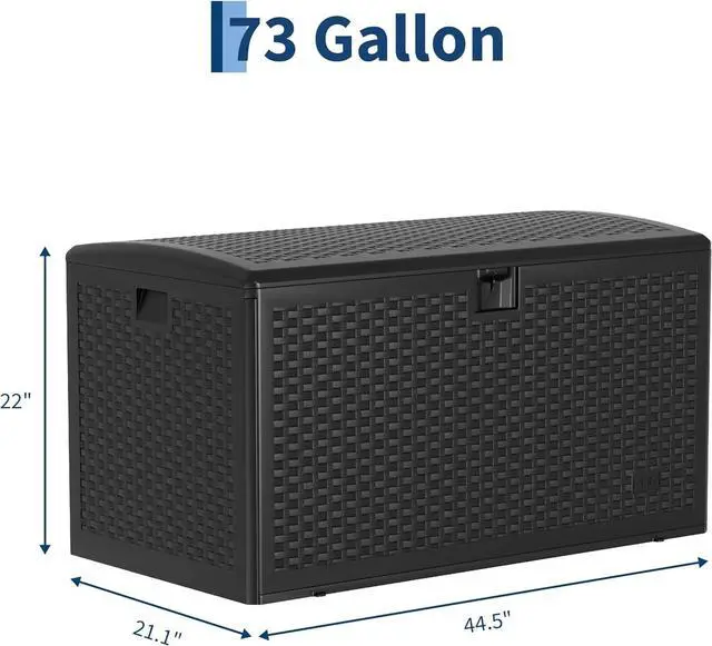73 Gallon Waterproof Large Resin Deck Box Indoor Outdoor, Lockable Storage Container for Patio Furniture Cushions, Throw Pillows, Garden Tools, and Pool Floats, Black
