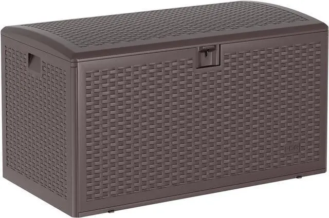 120 Gallon Waterproof Large Resin Deck Box Indoor Outdoor, Lockable Storage Container for Patio Furniture Cushions, Throw Pillows, Garden Tools, and Pool Floats, Brown